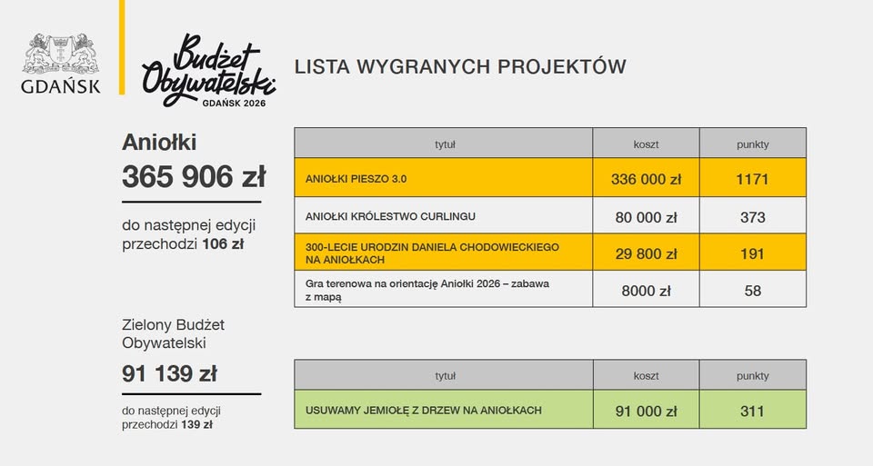 Poznaliśmy wyniki głosowania do Budżet Obywatelski dla Gdańska 2026.